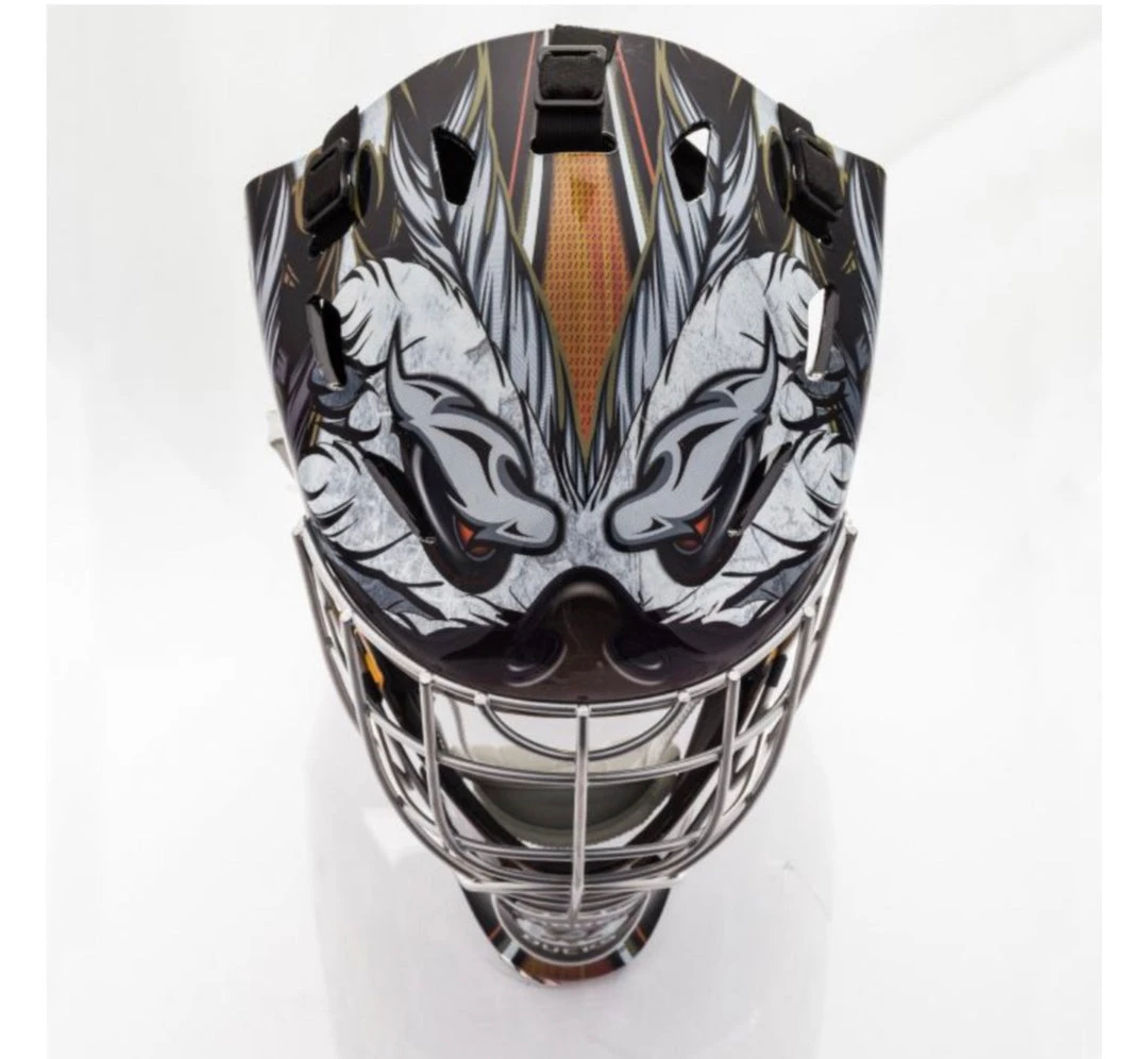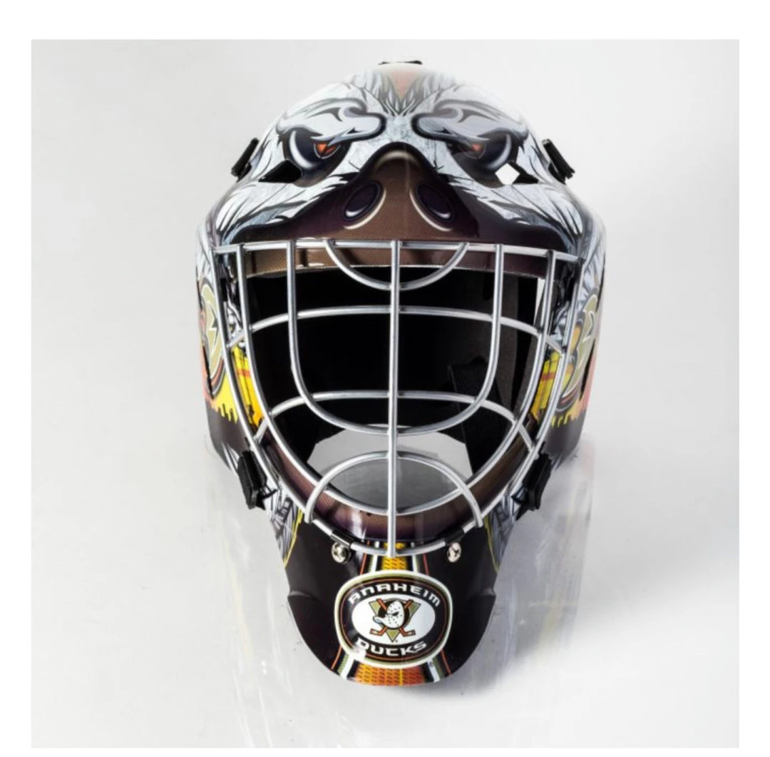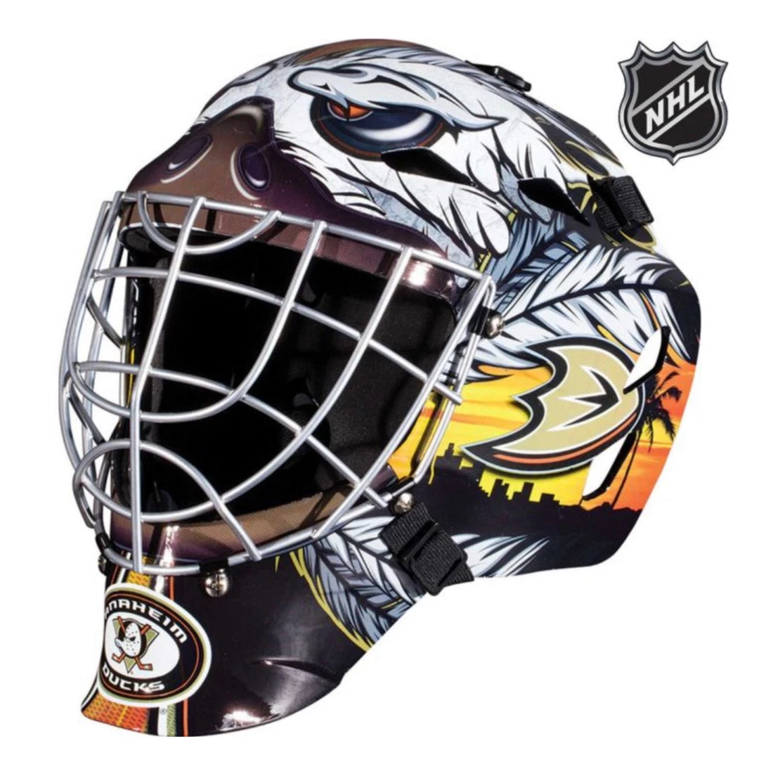 The Franklin Sports GFM 1500 NHL Team Licensed Goalie Face Mask series keep any street hockey goalie protected and comfortable while representing your favorite NHL team. Each helmet features official NHL team colors and logos and the chrome finished steel cage makes you feel like one of your favorite goalies between the pipes.