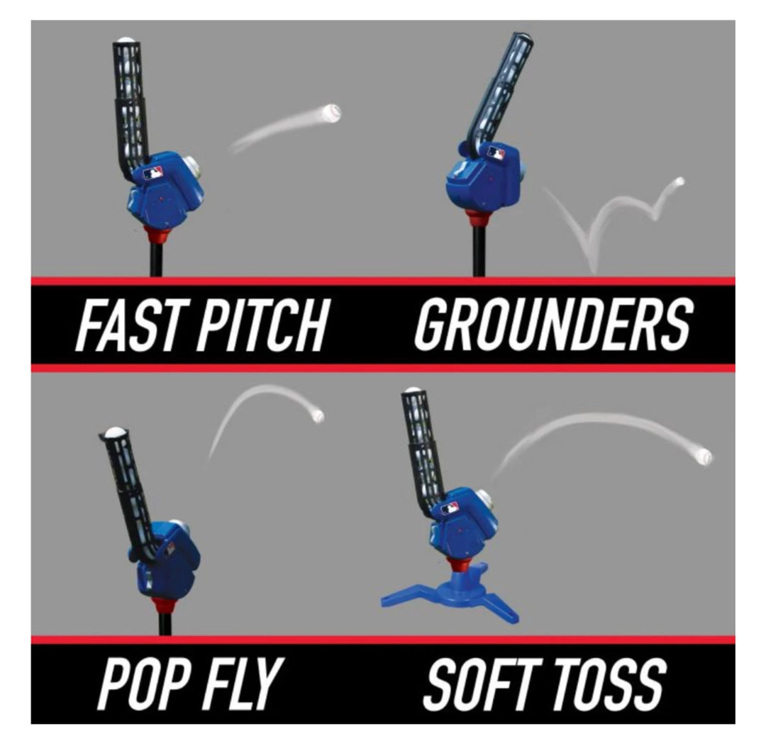 Perfect for building confidence and skills in young players. Practice training by easily setting the machine to the designated angle for practice hitting and fielding. Perfect for building confidence and skills in young players. Practice training by easily setting the machine to the designated angle for practice hitting and fielding. 1. Soft pitch 2. Fastpitch 3. Grounders4. Pop-ups
