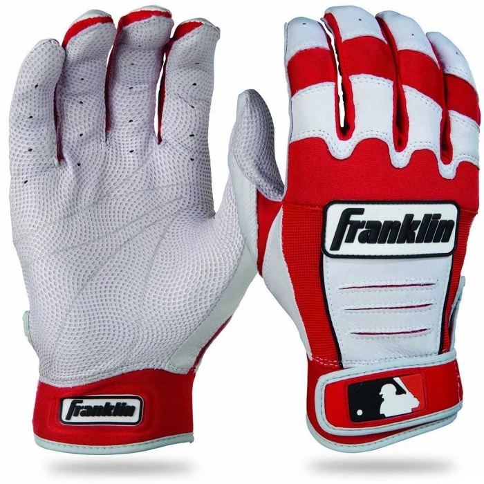 The Franklin CFX Pro Series Baseball Batting Gloves are worn by the most Franklin Pros in the majors today including stars like Paul Goldschmidt, Justin Turner, Ronald Acuna Jr., and Gary Sanchez. These major league gloves are designed to improve performance and increase grip on any bat in all weather conditions. Made with PITTARDS DIGITAL sheepskin leather the CFX Pro Series batting glove provide long-lasting softness and tactility. Find the perfect color to match your team’s colors from our extensive collection of custom batting gloves. Floating thumb technology increases glove flexibility and adaptability Dual-layered lycra-flex bridge provides lightweight flexibility across the knuckle back and side-flex areas Tectonic fit inserts accommodate flex without adding bulk to the back of the hand PITTARDS® DIGITAL® sheepskin leather maintains softness and tactility in all conditions QUAD-FLEX creasing decreases material buildup between your hand and the bat handle One-piece leather palm maintains superior grip, and provides a smooth, seamless feel on any bat