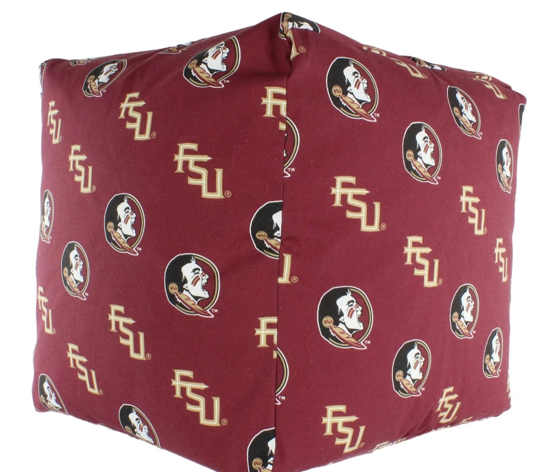 Our NCAA licensed Cube Cushion Pouf Chair Bean Bag Ottoman, pouf chair or square chair is a great addition to any patio, tailgate spot, dorm room, game room or fan cave. This cushion is made with UV treated high spun polyester, to resist stains, mildew, weather and fading in sunlight. This cushion or chair works great for any number of things: extra dorm room chair, foot rest in your patio or pool area, on the go seating while tailgating or a perfect chair in your child’s game room. Our Cube Cushion Pouf Chair Bean Bag Ottoman or square chair is filled with a 100-percent recycled polystyrene beads sourced from South Dakota and stuffed and finished right here in Nebraska. Lightly spot clean or hand wash with a mild detergent and cool water, allow to air dry. Measures 18-inches long x 18-inches wide x 18-inches high.
