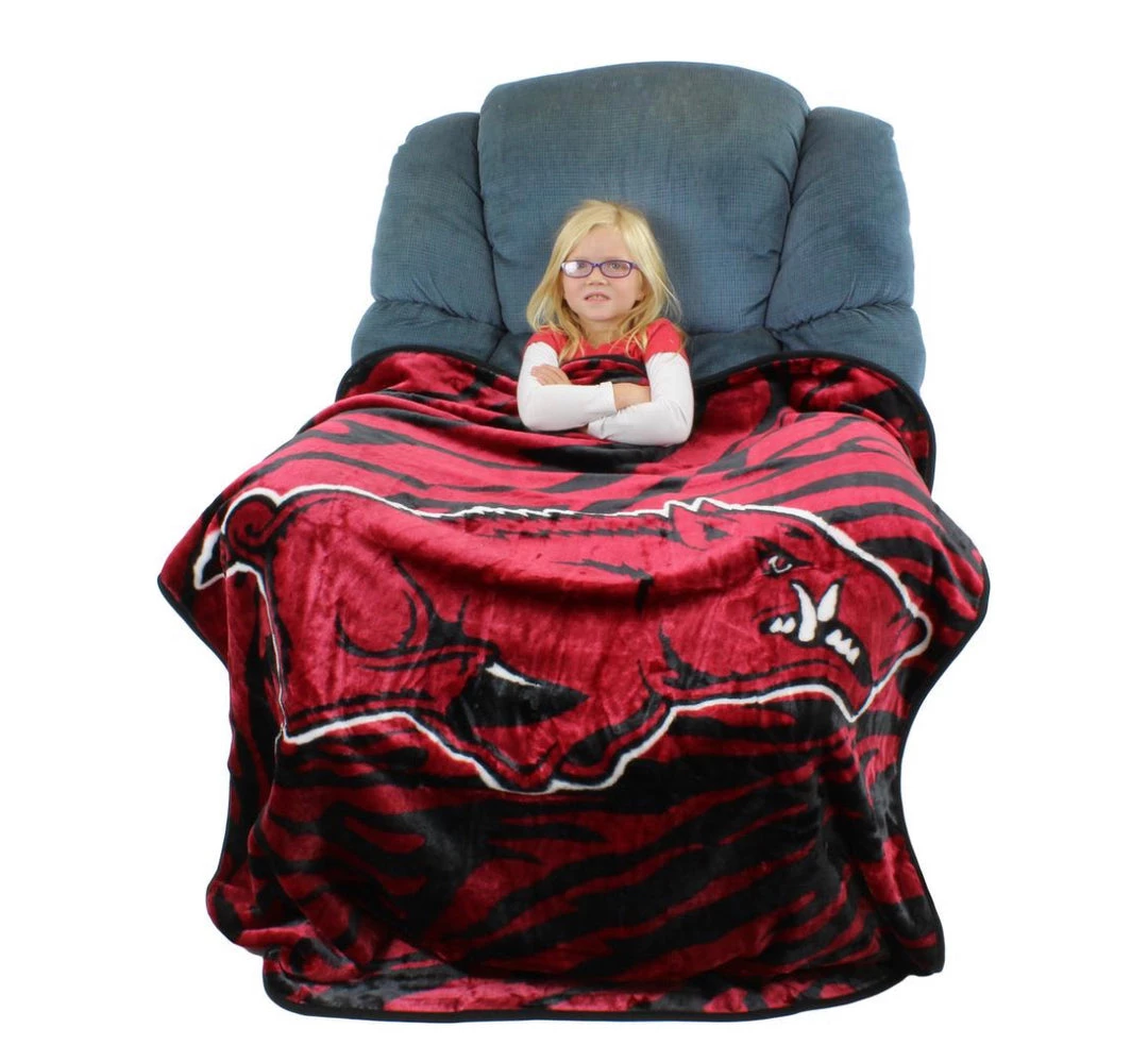 Our smaller 50 inch by 60 inch throw blanket is a great alternative to our sometimes too big throw blanket. This perfectly sized, hi pile raschel knit blanket, provides a super soft feel and awesome color. Whether you are cuddling on the couch or tailgating at the big game, this throw blanket has got you covered. Made from 100% polyester, this blanket can be machine washed in cold water. It can be tumble dried on a low temperature, but can also be allowed to air dry. Imported.