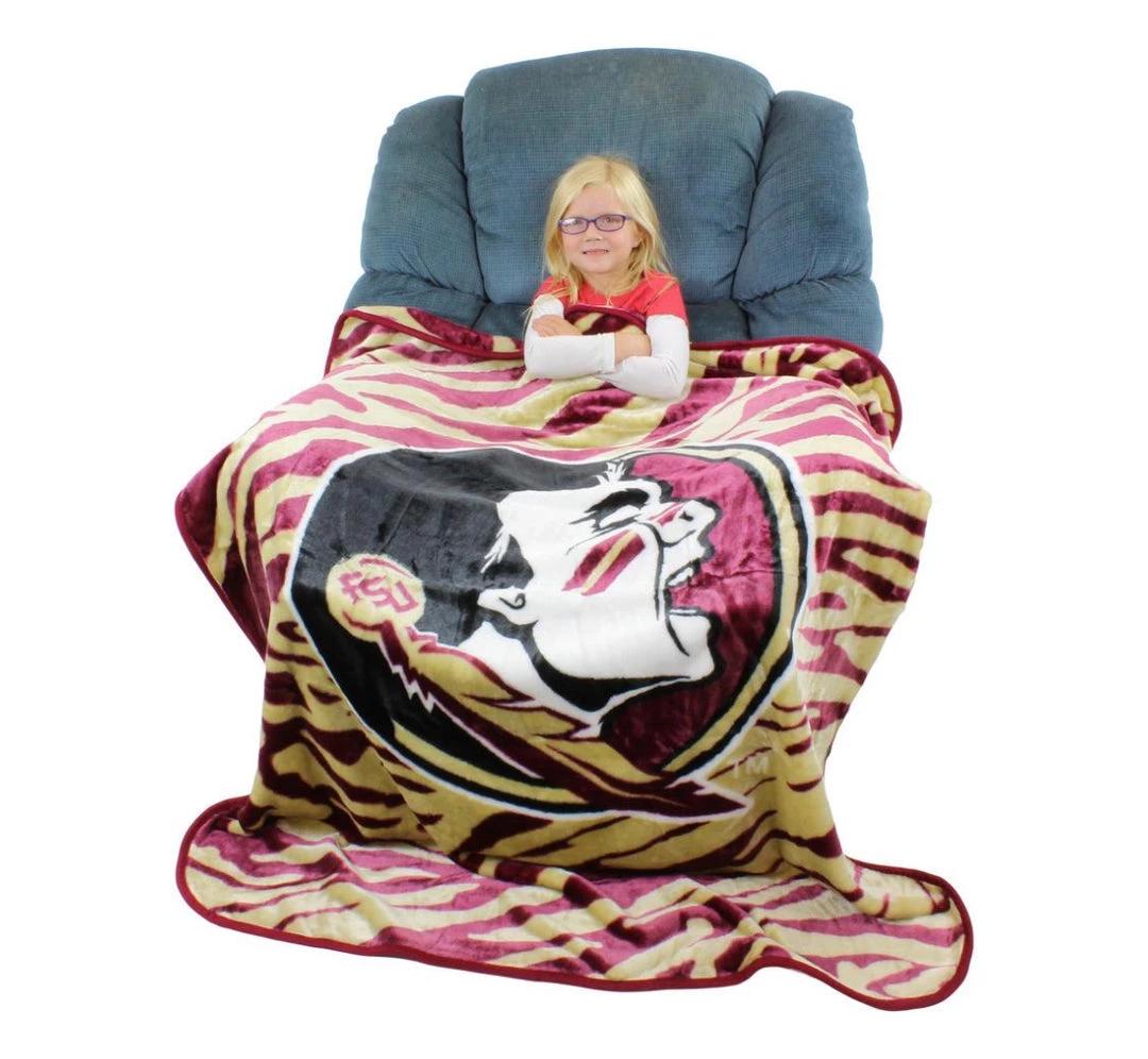 Our smaller 50 inch by 60 inch throw blanket is a great alternative to our sometimes too big throw blanket. This perfectly sized, hi pile raschel knit blanket, provides a super soft feel and awesome color. Whether you are cuddling on the couch or tailgating at the big game, this throw blanket has got you covered. Made from 100% polyester, this blanket can be machine washed in cold water. It can be tumble dried on a low temperature, but can also be allowed to air dry. Imported.