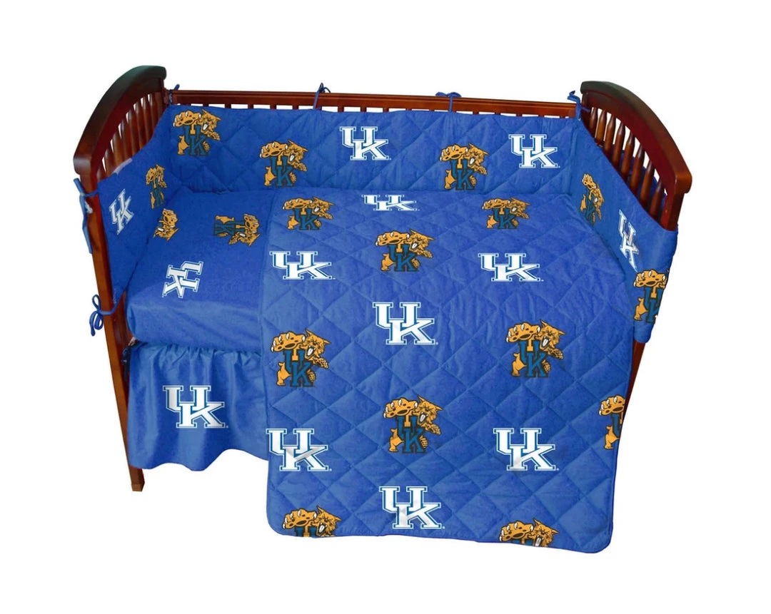 Officially NCAA licensed, made by College Covers, baby crib set is a 5 piece baby crib set perfect for any fans baby girl or boy. Our crib set includes a reversible comforter, two fitted sheets, bed skirt and a bumper pad. The comforter measures: 34″ x 51″ and is quilted to eliminate bunching of the soft poly fill, then finished with a corded edge for a nice look. The sheets measure: 28″ x 52″ + 6″ and should fit up to a 6″ crib mattress. All items are 100% cotton sateen, 200 thread count for a nice and soft resting place for your most special little one. Machine washable in cold water with like colors and tumble dry on low heat is recommended. Imported.