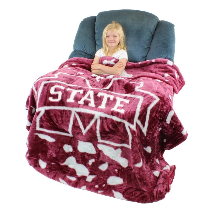 Our huge 63 inch by 86 inch throw blanket can also be used as a twin bedspread. The hi pile raschel knit blanket, provides a super soft feel and awesome color. Whether you are cuddling on the couch or tailgating at the big game, this throw blanket has got you covered. Made from 100% polyester, this blanket can be machine washed in cold water. It can be tumble dried on a low temperature, but can also be allowed to air dry. Imported.