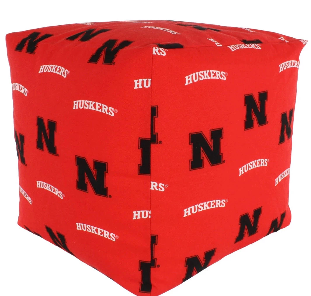Our NCAA licensed Cube Cushion Pouf Chair Bean Bag Ottoman, pouf chair or square chair is a great addition to any patio, tailgate spot, dorm room, game room or fan cave. This cushion is made with UV treated high spun polyester, to resist stains, mildew, weather and fading in sunlight. This cushion or chair works great for any number of things: extra dorm room chair, foot rest in your patio or pool area, on the go seating while tailgating or a perfect chair in your child’s game room. Our Cube Cushion Pouf Chair Bean Bag Ottoman or square chair is filled with a 100-percent recycled polystyrene beads sourced from South Dakota and stuffed and finished right here in Nebraska. Lightly spot clean or hand wash with a mild detergent and cool water, allow to air dry. Measures 18-inches long x 18-inches wide x 18-inches high.