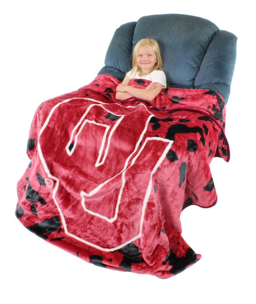 Our huge 63 inch by 86 inch throw blanket can also be used as a twin bedspread. The hi pile raschel knit blanket, provides a super soft feel and awesome color. Whether you are cuddling on the couch or tailgating at the big game, this throw blanket has got you covered. Made from 100% polyester, this blanket can be machine washed in cold water. It can be tumble dried on a low temperature, but can also be allowed to air dry. Imported.