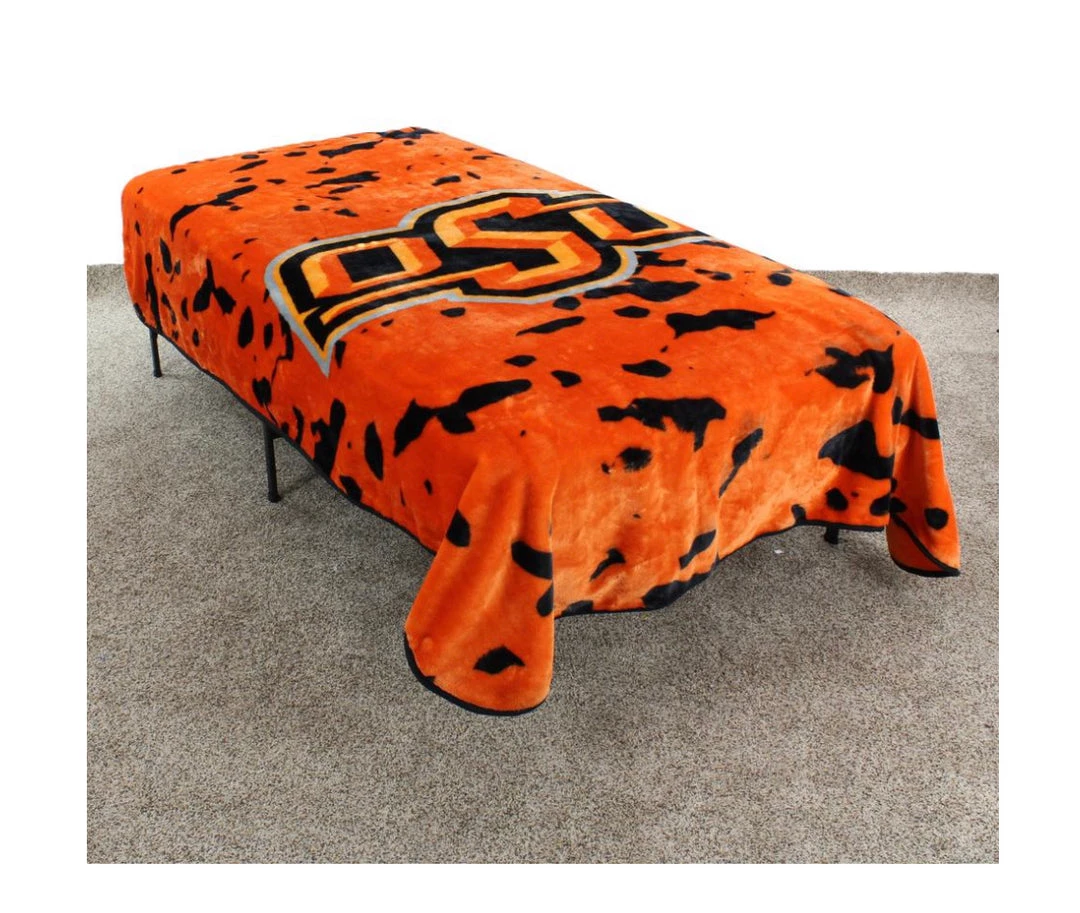 Our huge 63 inch by 86 inch throw blanket can also be used as a twin bedspread. The hi pile raschel knit blanket, provides a super soft feel and awesome color. Whether you are cuddling on the couch or tailgating at the big game, this throw blanket has got you covered. Made from 100% polyester, this blanket can be machine washed in cold water. It can be tumble dried on a low temperature, but can also be allowed to air dry. Imported.