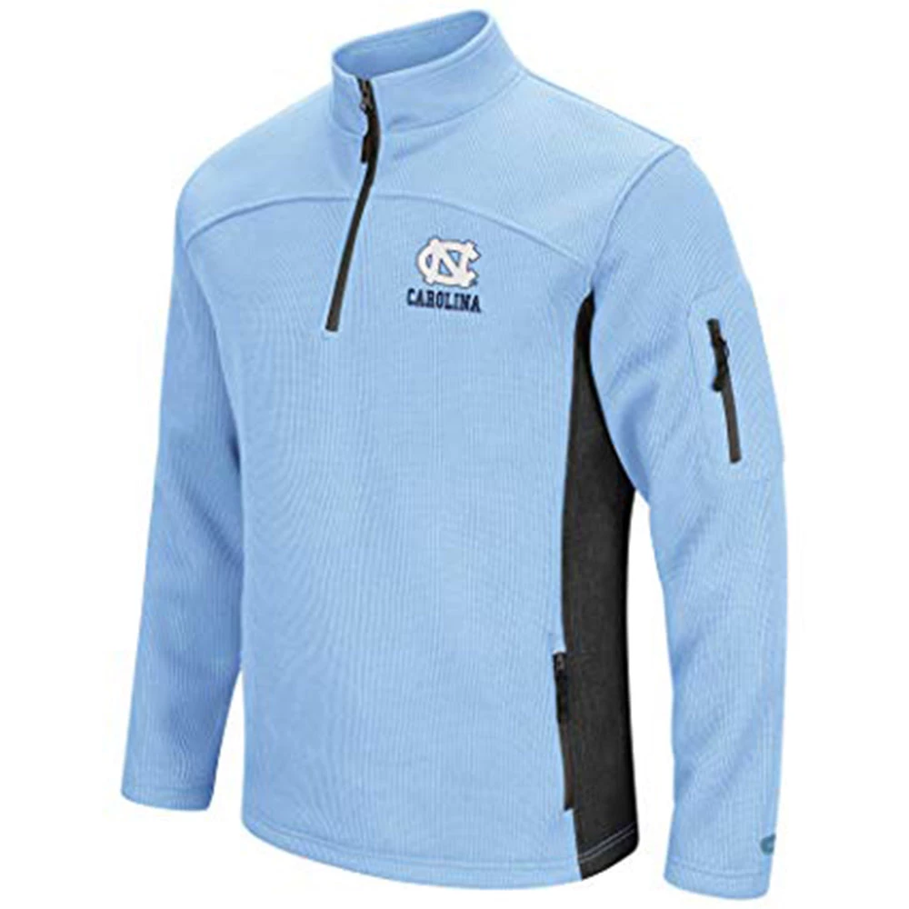 Official Product Collegiate product; represent in game day or any day Elegant while supporting your team in this man advantage 1 1/4 zip resistant with fleece lining by Colosseum; your UNC football closet will not be complete without this cozy jacket This sweater is sure to keep you warm on the cold days of Autumn and winter; High quality features embroidered logo on the left chest and an embroidered patch on the back of the neck Side inserts gives this jersey a sporty look so you can be sure of great design on game day; The body is made of 100% polyester and the insert is made of 96% polyester and 4% elastane for a perfect fit Gift idea for any football lover in your life; Perfect for holiday, birthday and more