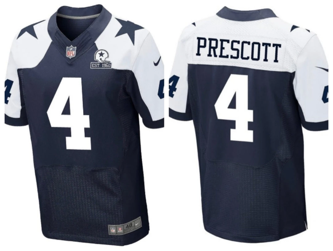 Celebrate 60 years and show off your favorite player with the Dallas Cowboys 60th Anniversary Dak Prescott #4 Nike White Game Replica Jersey. This Nike Dallas Cowboys Dak Prescott jersey is a high-quality replica jersey at a great value. The solid-body construction and silicone graphics enhance the classic Cowboys style, and the Nike Swoosh logos on the sleeves set off the entire look.