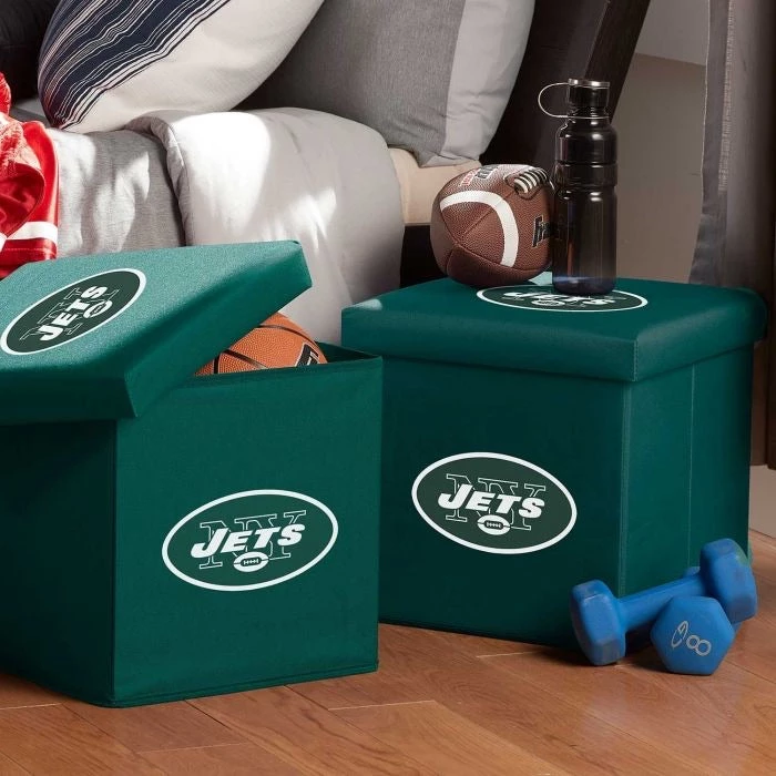 Keep all of your things organized while showing your team colors with these fully collapsible storage units. Perfect for any bedroom, playroom, living room or anywhere else you need a quick storage solution. Each unit is constructed of durable MDF board and polyester fabric, allowing it to double as your footrest on game day! The padded top lid is fully removable for easy access to the storage compartment. Perfect for stashing magazines, remotes, and more! Now available with your favorite NFL team’s logo!