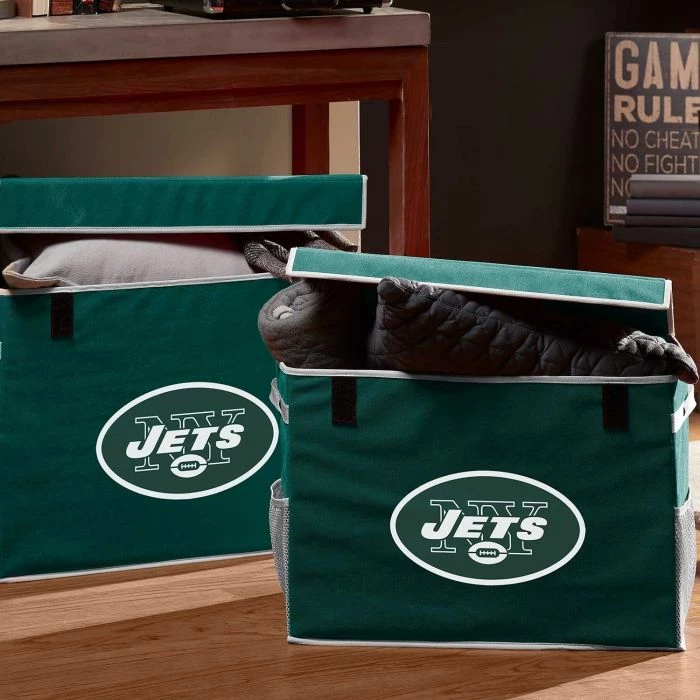 Keep all of your things organized while showing your team colors with these fully collapsible foot lockers! Each foot locker comes folded flat and quickly assembles! Great for storing toys, clothes or anything else you need to quickly stow away! These foot lockers are a perfect addition to any bedroom, playroom, car trunk or anywhere else you need a quick storage solution! Comes complete with an attached lid with self-stick closures, and mesh side pockets for additional storage. Available for all NFL teams! Fully collapsible Footlocker with lid! Assembles to (LARGE 26″w x 16″d x 16″h) (SMALL 22″w x 14″d x 14″h) Durable Terylene fabric construction Mesh side pockets for additional storage Official NFL team logos and colors!