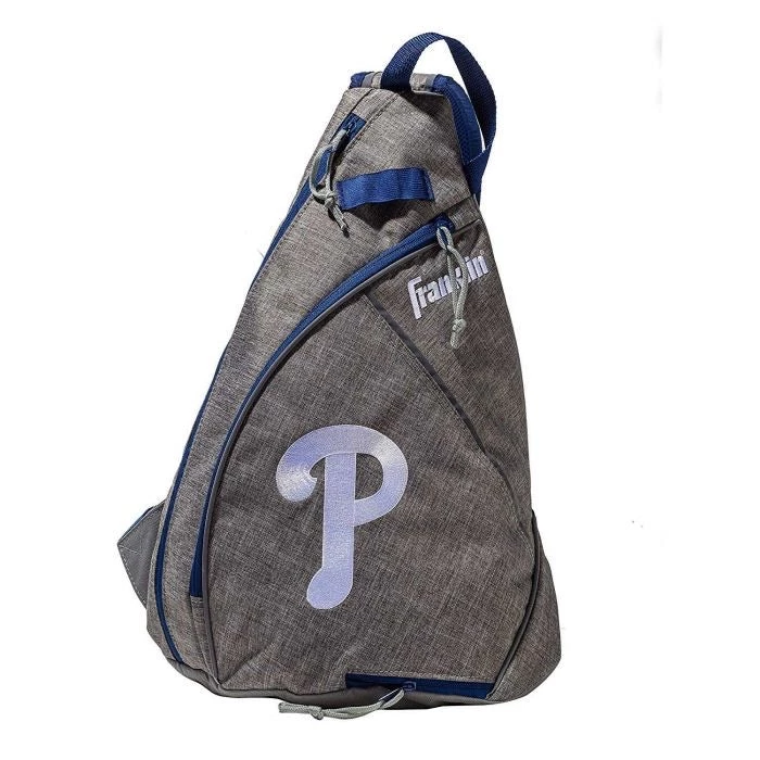 Perfect for holding your baseball equipment or as an everyday bag! The Franklin Sports sling-style bag with retractable bat storage compartment is easy to throw on your way to the field. It is convenient and comfortable to wear due to its anatomical sling strap design. On the inside of the bag, we’ve included a J-style fence hook so you can hang your stuff in the dugout! It is made of a rugged heather grey polyester material with team color accents! Official MLB club logos are embroidered so everyone on and off the field can know who you root for! Arrive in style, and prepare yourself for success by keeping everything you need inside!!
