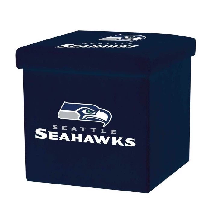 Keep all of your things organized while showing your team colors with these fully collapsible storage units. Perfect for any bedroom, playroom, living room or anywhere else you need a quick storage solution. Each unit is constructed of durable MDF board and polyester fabric, allowing it to double as your footrest on game day! The padded top lid is fully removable for easy access to the storage compartment. Perfect for stashing magazines, remotes, and more! Now available with your favorite NFL team’s logo!