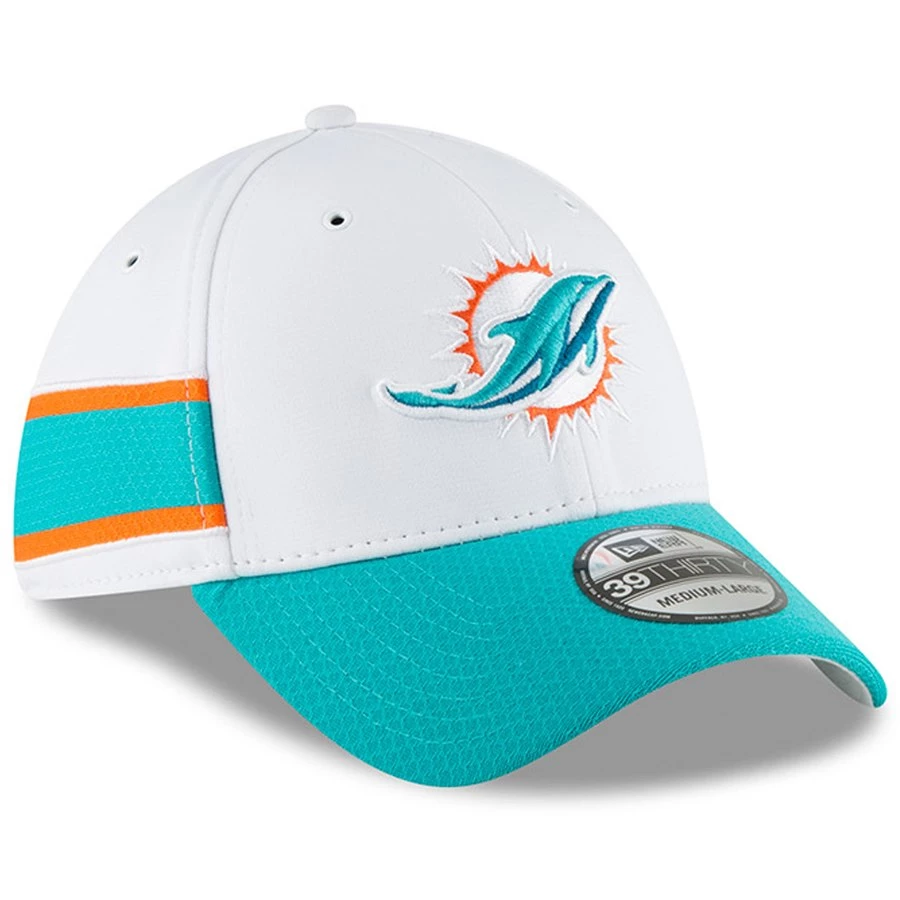 Men’s Miami Dolphins New Era White/Aqua 2018 NFL Sideline Home Official 39THIRTY Flex Hat Med/large
