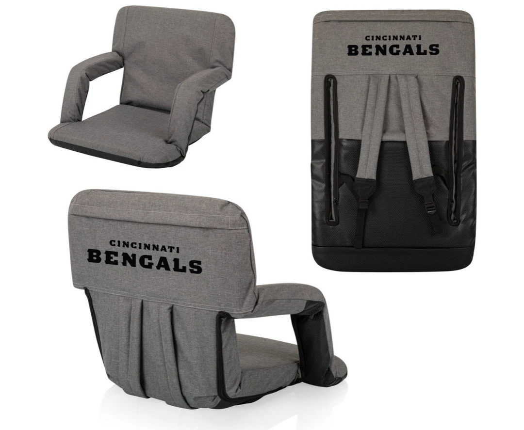 Your buns and back will thank you for easing into the high-density foam comfort of the Ventura Seat, a reclining stadium chair. Take the Ventura Stadium Seat with you, using adjustable backpack straps. Its armrests actually invert up to 20″ to add width to the seat, if needed. Explore the Ventura Seat’s six backrest positions to find the perfect groove for your aching back. Whether you’re watching your kid’s soccer game or gaming with your buddies, the Ventura Seat elevates kicking back.