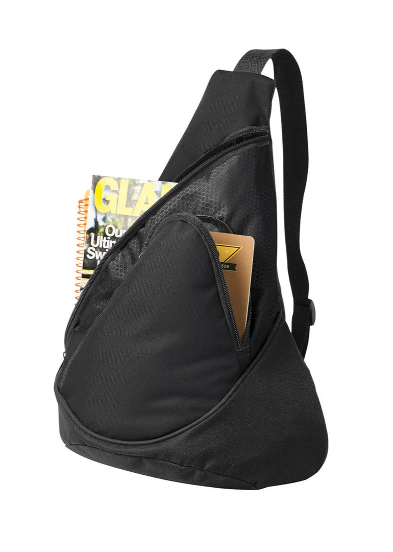 Honeycomb texture adds interest to this budget-minded sling pack that includes an audio pocket.