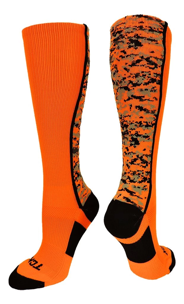 TCK Digital Camo OTC Socks Neon Orange Black NCAA