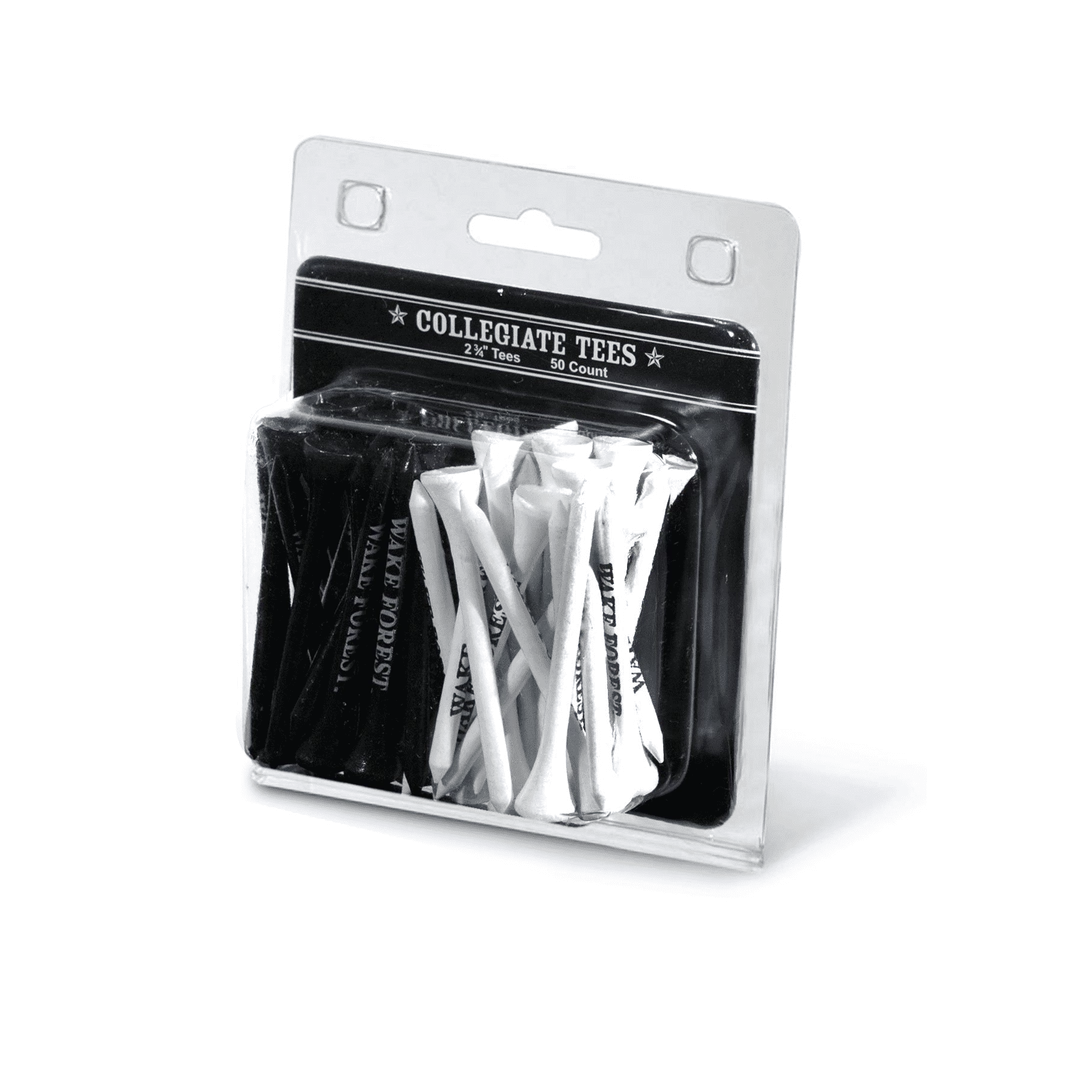 Tee it up and drive it down the fairway with the Wake Forest Demon Deacons 50 Golf Tee Pack. These team colored tees are imprinted with the team name, so you won’t mix them up with your fellow golfers tees! The 2 3/4″ length is perfect for your driver, woods, and irons.