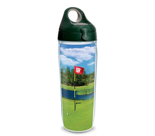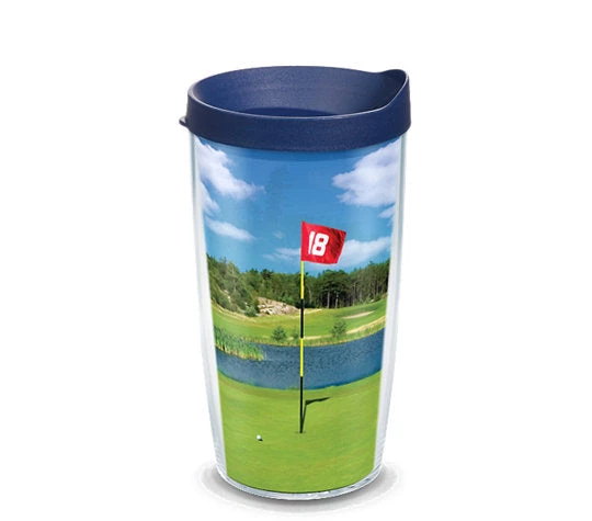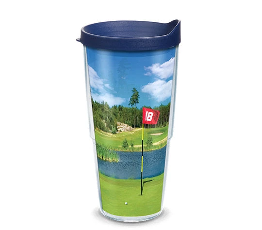 A picture-perfect round of golf is capped by a short putt and a great drink. Made in America & Lifetime Guarantee This tumbler is BPA free Great for both hot & cold (Use caution with hot liquids and carbonated beverages, which aren’t recommended for water bottle) Microwave & dishwasher safe Reduces condensation Printed wrap-around design (sealed between walls of tumbler) Personalization not available Fits most cup holders (excluding mug) Pictured lid Included
