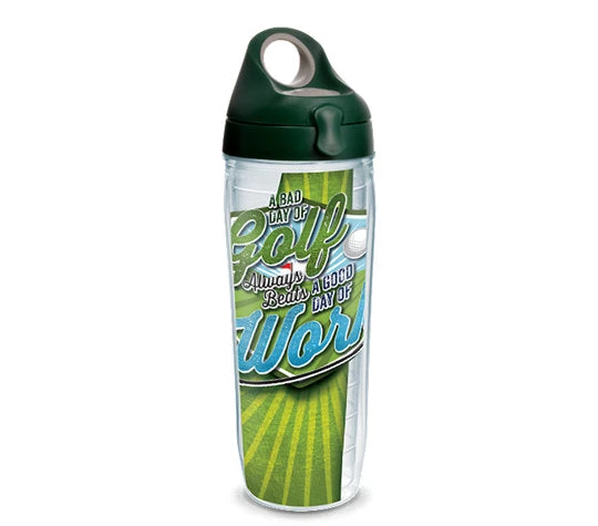 Fore … a good time, play hooky from work and take a drive – or 18 of them. Don’t forget this fun golf drinkware to keep your beverage on par the entire day. Made in America & Lifetime Guarantee This tumbler is BPA free Great for both hot & cold (Use caution with hot liquids and carbonated beverages, which aren’t recommended for water bottle) Microwave & dishwasher safe Reduces condensation Printed wrap-around design (sealed between walls of tumbler) Personalization not available Fits most cup holders (excluding mug) Pictured lid Included