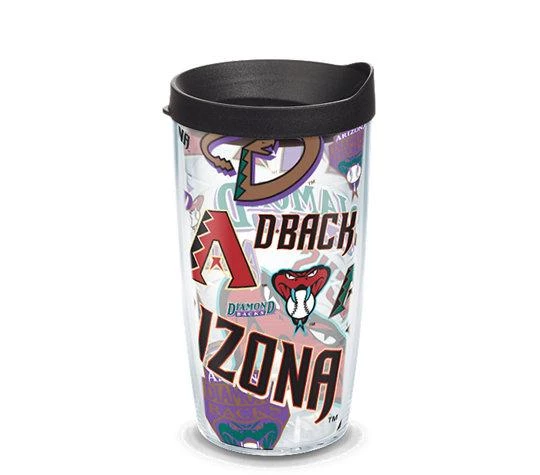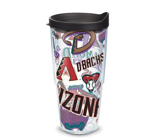 Wrap your favorite hot or cold drinks in an Arizona Diamondbacks™ logo tumbler and they won’t get rattled. Made in America & Lifetime Guarantee This tumbler is BPA free Great for both hot & cold (Use caution with hot liquids and carbonated beverages, which aren’t recommended for water bottle) Microwave & dishwasher safe Reduces condensation Printed wrap-around design (sealed between walls of tumbler) Personalization not available Fits most cup holders (excluding mug) Pictured lid Included Major League Baseball trademarks and copyrights are used with permission of Major League Baseball Properties, Inc. Visit MLB.com