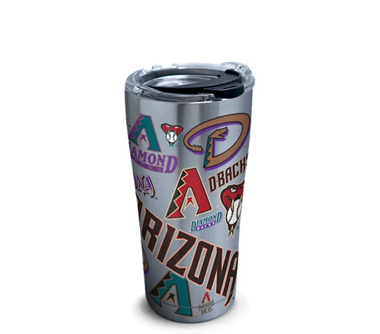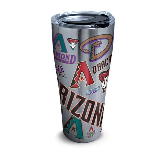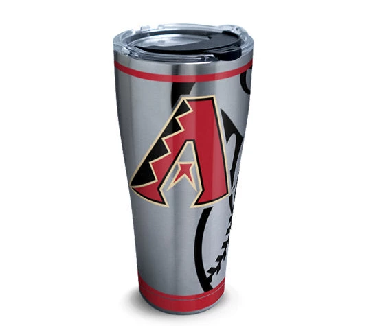 We get it. Your Arizona Diamondbacks™ are a big deal. That’s why we created a tumbler with a design that knows no bounds and keeps drinks on point for hours! Up to 24 hours cold and 8 hours hot Double-wall vacuum insulation and copper lined 18/8 stainless steel with leak resistant & easy-close lid Do not put tumbler in dishwasher, freezer or microwave Hand wash with soap (no bleach or chlorine) & water using a scratch-free sponge Tumbler designed & decorated in Venice, FL. Made in China. Limited 5-year guarantee Lid is dishwasher safe (top rack only) Major League Baseball trademarks and copyrights are used with permission of Major League Baseball Properties, Inc. Visit MLB.com