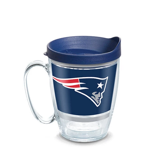 Get a handle on cheering for the New England Patriots while enjoying great, long-lasting refreshment from this spirit-raising mug. Made in America & Lifetime Guarantee This tumbler is BPA free Great for both hot & cold Microwave and dishwasher safe Reduces condensation Printed wrap-around design (sealed between walls of tumbler) Personalization not available Fits most cup holders (excluding mug) Pictured lid Included © 2018 NFL Properties LLC